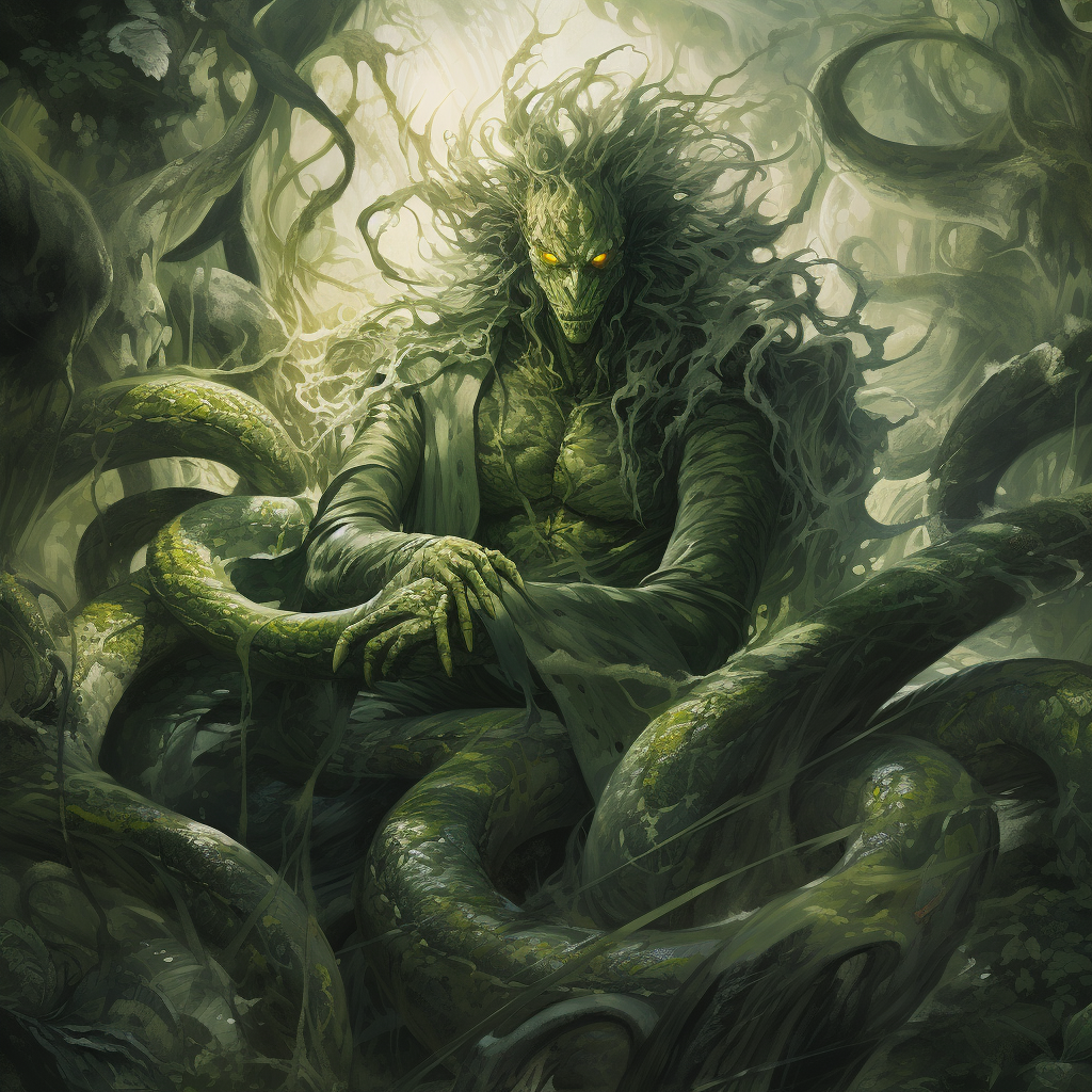Angui, ein Schlangendämon, ist ein Meister der Täuschung und der schleichenden Manipulation, er webt ein Netz aus tödlichen Intrigen, um seine Anhänger in einen Strudel aus Machtgier und Verrat zu ziehen. Während sie sich in diesen Machenschaften verstricken, zieht Angui die metaphorische Schlinge um ihre Kehlen enger, bis die Luft des Verrats ihre Lungen zu erdrücken scheint. Diejenigen, die seinen Spielchen verfallen, finden sich in einem gefährlichen Tanz der Täuschung und Macht wieder.